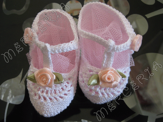 Scarpine neonato all’uncinetto con rosellina