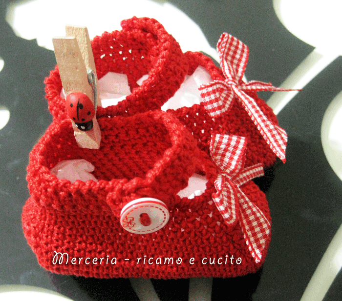 Scarpine neonato rosse con fiocchetto all’uncinetto