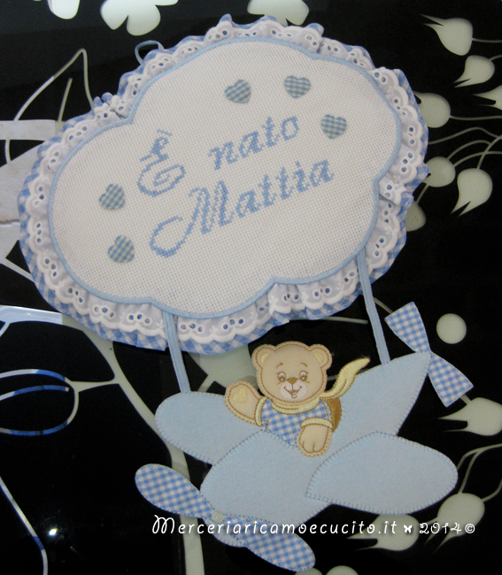 Fiocco nascita aeroplano celeste e bavette prima misura per Mattia 5 marzo 2014Lascia un commento in Fiocco nascita aeroplano celeste e bavette prima misura per Mattia Fiocco nascita aeroplano celeste “E’ nato Mattia”