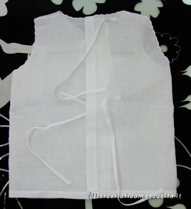 Camicina porta fortuna in lino con ricamo punto antico