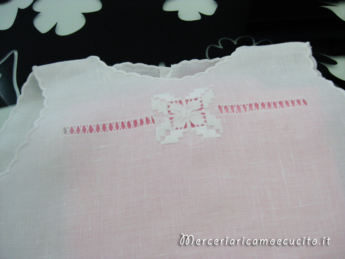 Camicina porta fortuna in lino con ricamo punto antico